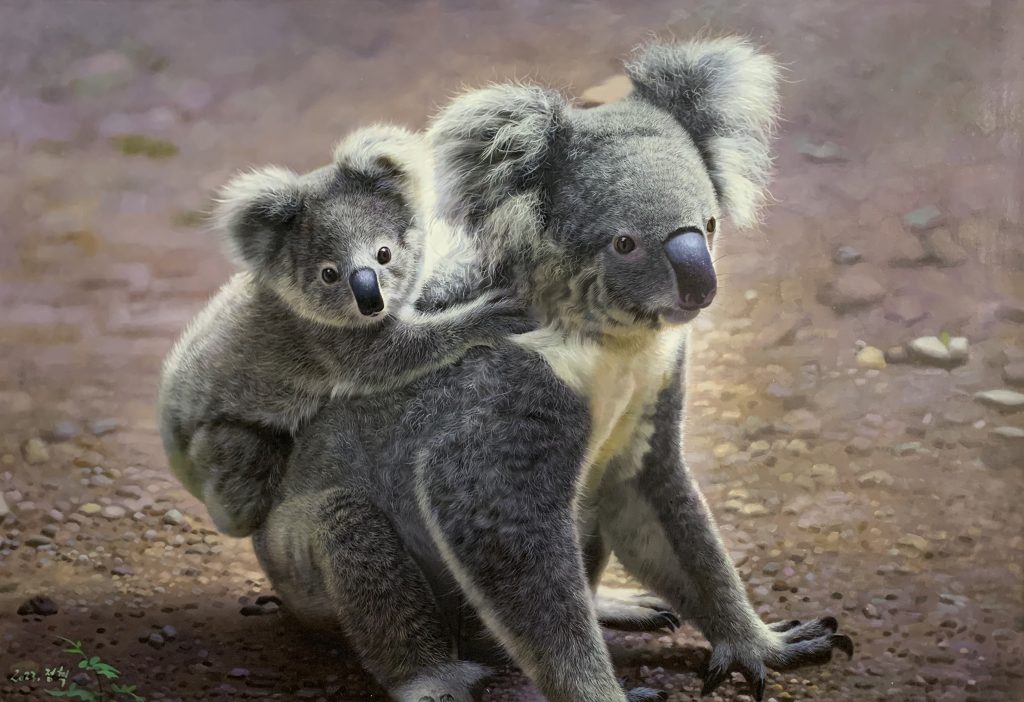 Gentle Bond – Koala Oil Painting by DPRK Artist Jung Hyuk