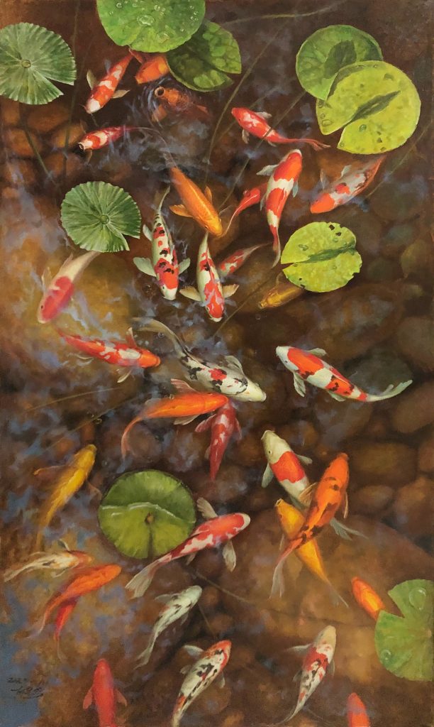 In an age of digital reproductions, owning an original koi fish oil painting offers a tactile depth that prints simply cannot match. You can see the texture of the brushstrokes and the layers of oil paint that give the water its “wet” appearance. For those interested in the technical aspects of these symbols, you can explore more about the meaning of koi in Feng Shui to understand why they are so highly valued.