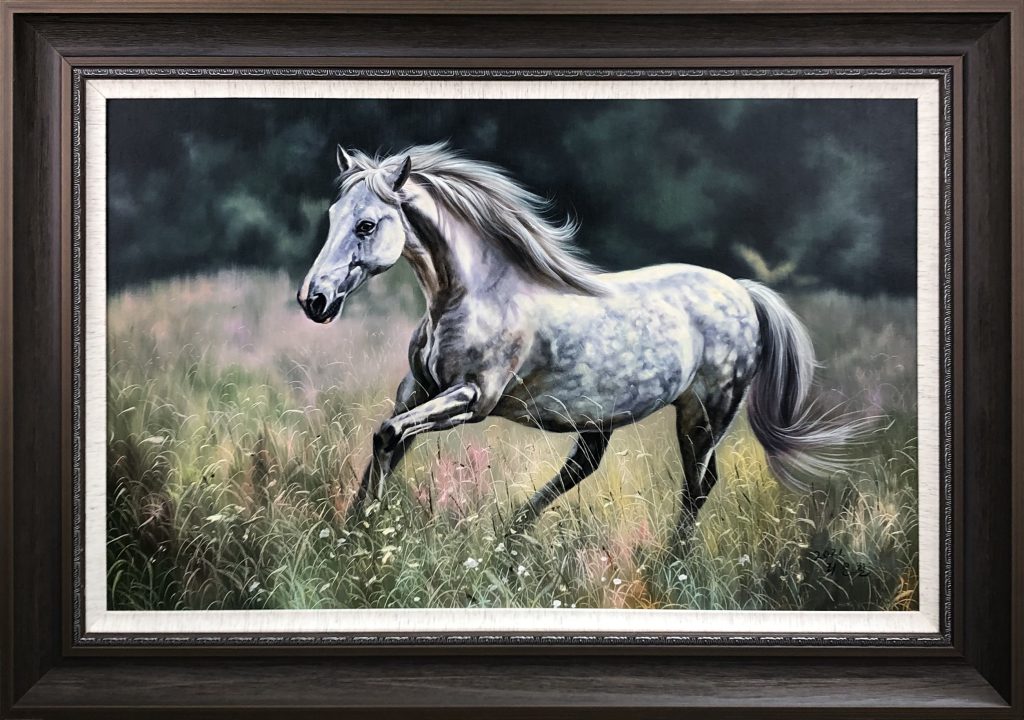 In the world of fine art, the image of a horse in motion is a timeless symbol of vitality and success. However, few artists capture the raw, ethereal energy of a stallion quite like the North Korean master Li Wenzhe (李文哲). His latest work, a stunning 90 x 57 cm oil on canvas, brings the “Spirit of the Steppe” into the modern home.